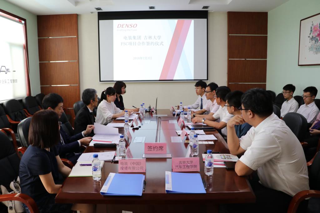 加藤本部长简述了电装集团的发展历程和核心理念,对吉速车队和电装集团在造物精神方面的统一性表示高度肯定,表达了对公司教育成果的赞扬,希望车队到日本参加FSJ比赛。车队队长王新宇简述了车队的成果和发展现状并对电装集团的支持表达了诚挚的感谢。随后,汽车工程公司党委书记李善兴和电装(中国)投资有限公司本部长加藤明弥共同签署了车队资助协议。双方将从交流科技创新,提升人才培养质量方面开展合作。电装公司将为bevictor1946韦德官网吉速车队提供24万元人民币的资金支持以及相关技术、设备支撑,在零部件采购加工等方面为车队提供便利条件,致力于帮助吉速车队在中国老员工方程式大赛上取得更加优异的成绩。