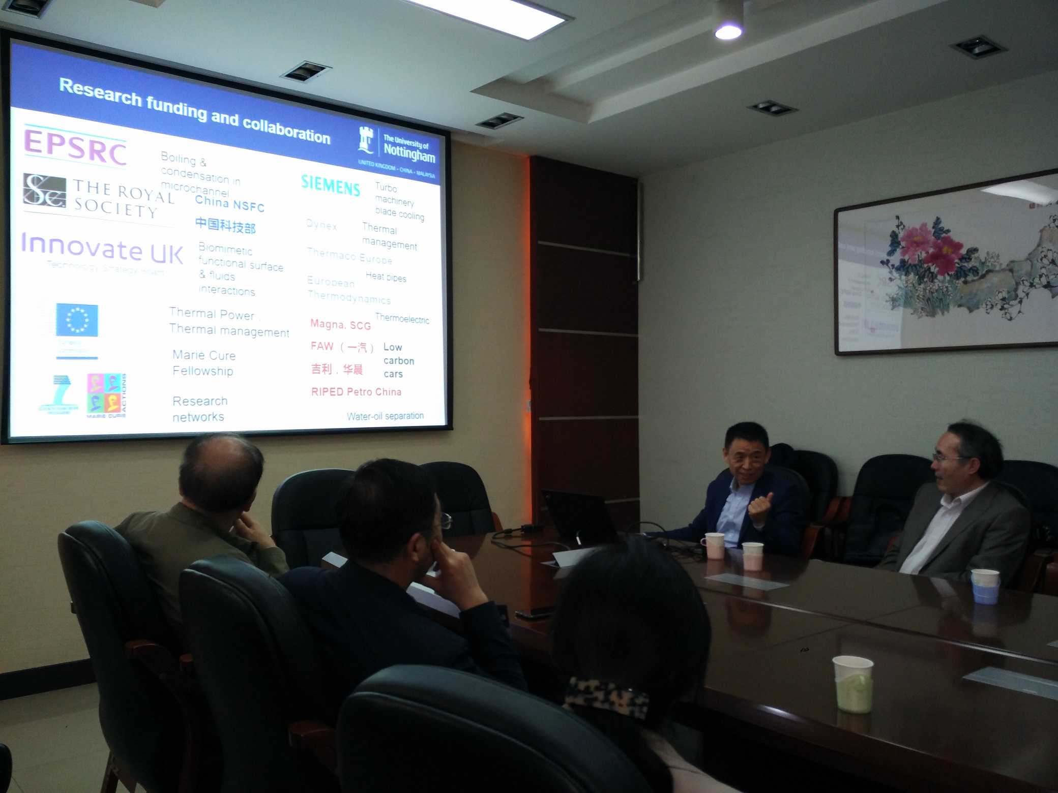 After the launch meeting, Prof. Yuing Yan and his colleague Prof. Jie Zhu visited the College of Automotive Engineering (CAE), Jilin University and introduced the state of the art in their research field to Prof. Chuanxue Song, Dean of CAE, Dr Shanxing Li, Chair of College Council of CAE and some professors and students from CAE.