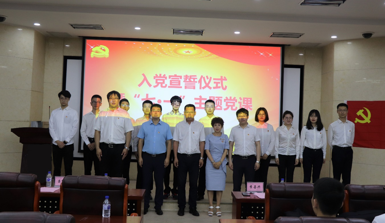 会上,吴昊老师宣读了2019年上半年发展党员名单。参会的公司领导老师为预备党员佩戴党员徽章。在团委书记吕博群老师的领誓下,新党员面对鲜红的党旗、举起右拳进行了庄严宣誓,郑重地许下了入党誓词。庄严有力的誓词深深触动和震撼着预备党员的心灵,预备党员赵路洋同志说:“今天宣誓正式加入党组织,既是人生新的起点,更是新的责任与担当。”