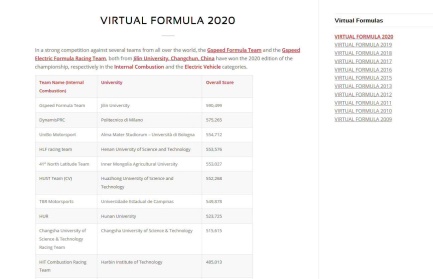 VI-Grade杯世界虚拟老员工方程式竞赛始于2009年,由世界知名的汽车系统动力学仿真模拟软件服务商VI-Grade公司主办。本届世界虚拟老员工方程式竞赛的参赛规模空前庞大,共有来自十余个国家的135支队伍参加,其中包括都灵理工大学、米兰理工大学、博洛尼亚大学等诸多世界知名高校,我国的同济大学、湖南大学、哈尔滨工业大学等院校也参加了此次比赛。