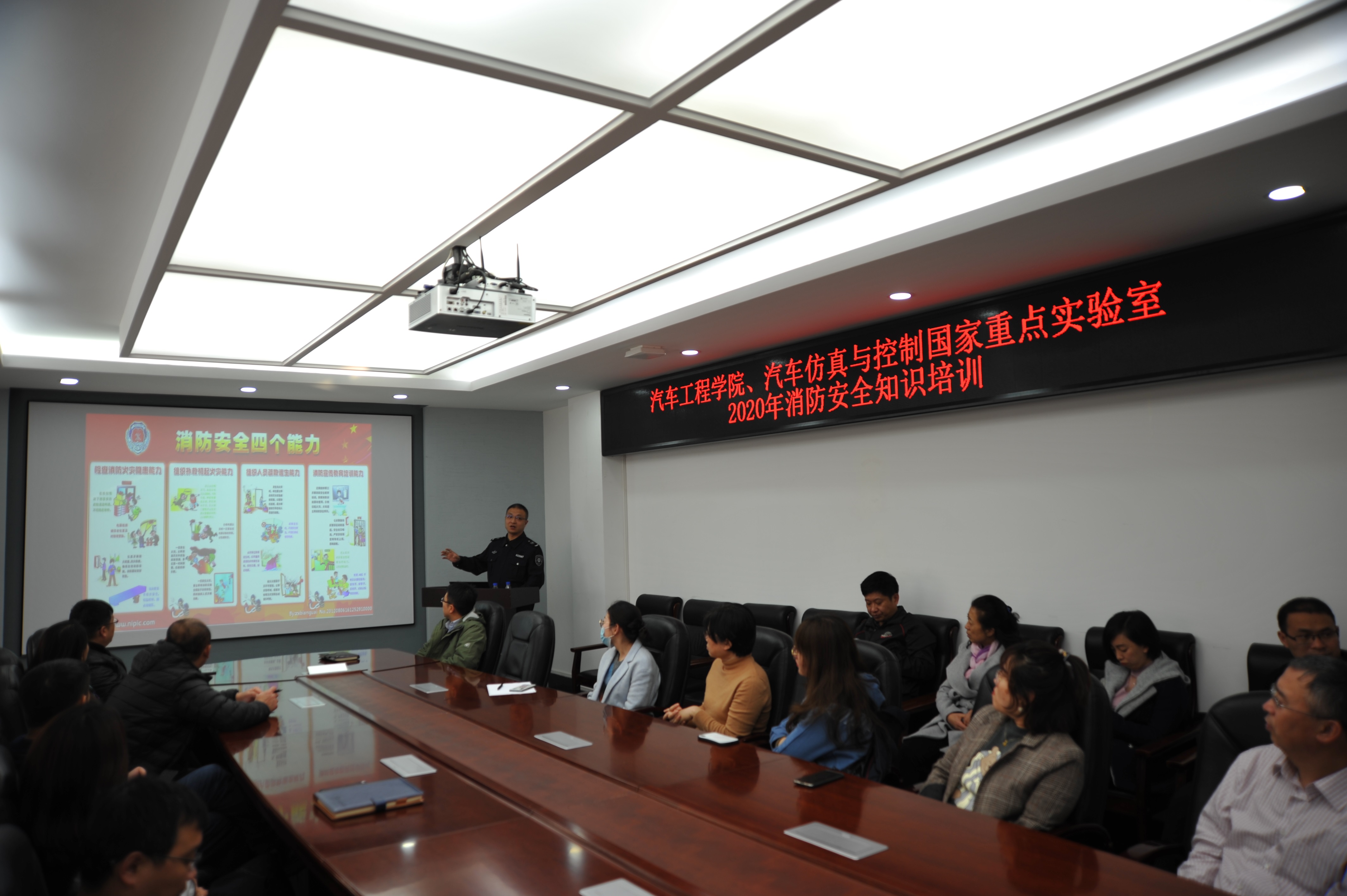 11月5日下午,bevictor1946韦德官网、汽车仿真与控制国家重点实验室联合东区保卫办举行了“2020年消防安全知识培训与防火疏散演练”活动。公司行政副经理林海兰、重点实验室副主任杨得军以及师生代表参加了此次活动。本次活动分为安全知识讲座、防火疏散演练和消防器材使用三个环节。