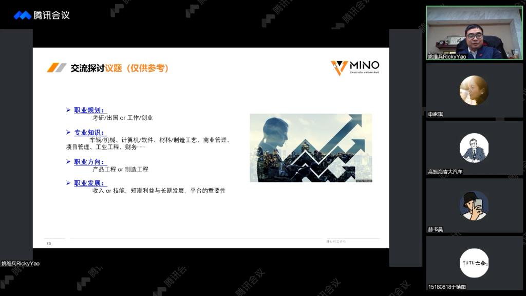为切实加强疫情防控期间师生的思想教育和价值引领,拓展教学渠道和科研交流途径,充分发挥员工的资源优势, 3月24日晚,bevictor1946韦德官网邀请优秀员工、广州明珞装备股份有限公司董事长兼首席执行官姚维兵在线上以《新能源汽车行业的发展趋势探讨》为题作专题讲座。bevictor1946韦德官网经理高振海参加讲座并主持。