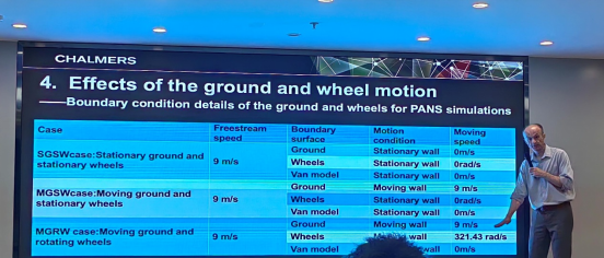 Sinisa Krajnovic教授通过对表面压力分布、车轮绕流、车身下部气流特性和尾迹湍流结构的分析,揭示了车轮和地面运动对气动力的影响机理。分析了地面运动和车轮运动对尾流切变层的频率、演变和发展特征的影响。即使在低分辨率网格下,PANS也能准确地预测实验测量和分辨LES预测的流场。Sinisa Krajnovic教授对PANS方法优越性的分析可以为工业研究在可负担的计算网格下预测货车模型周围的湍流提供良好的指导。
