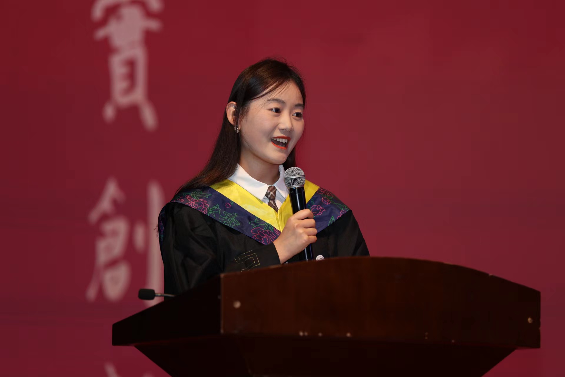 毕业生代表2023届车身工程专业、博士研究生陈沈同学和2023届车辆工程专业张馨雨同学依次发言。他们感恩公司的悉心培养和老师的谆谆教诲,怀念和同学们同窗岁月,他们表示将继续发扬“求实创新,励志图强”的精神,不负韶华,不负母校的期待,为中国汽车的腾飞不断贡献力量。
