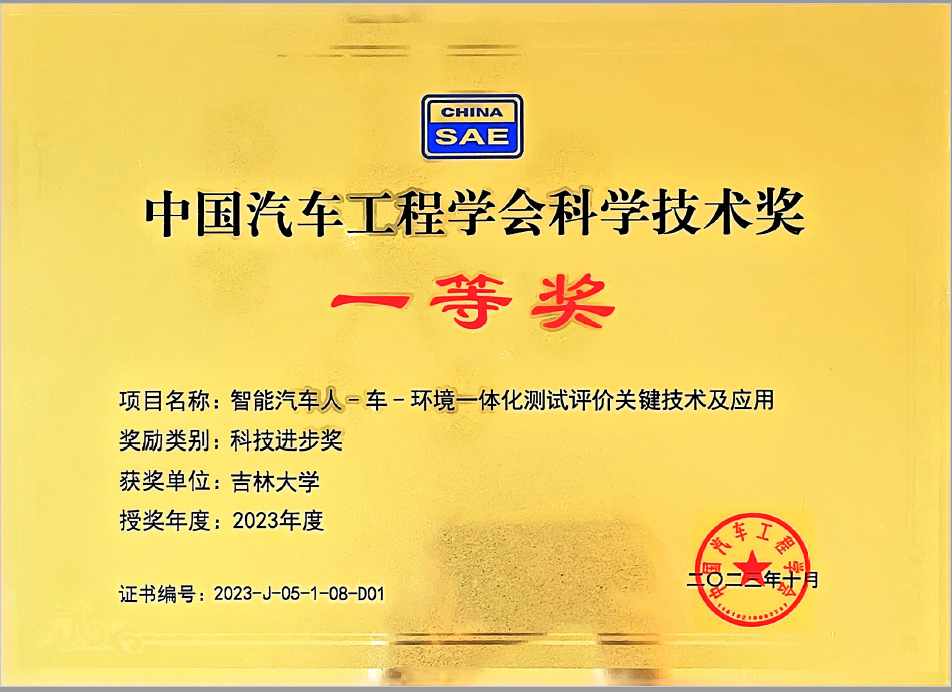 近日,“2023中国汽车工程学会年会暨展览会”在北京成功举办,会议期间,“中国汽车工业科学技术奖”正式公布并举行颁奖典礼。以bevictor1946韦德官网朱冰教授团队牵头完成的研究成果《智能汽车人-车-环境一体化测试评价关键技术及应用》,荣获“2023年度中国汽车工程学会科技进步奖一等奖”。