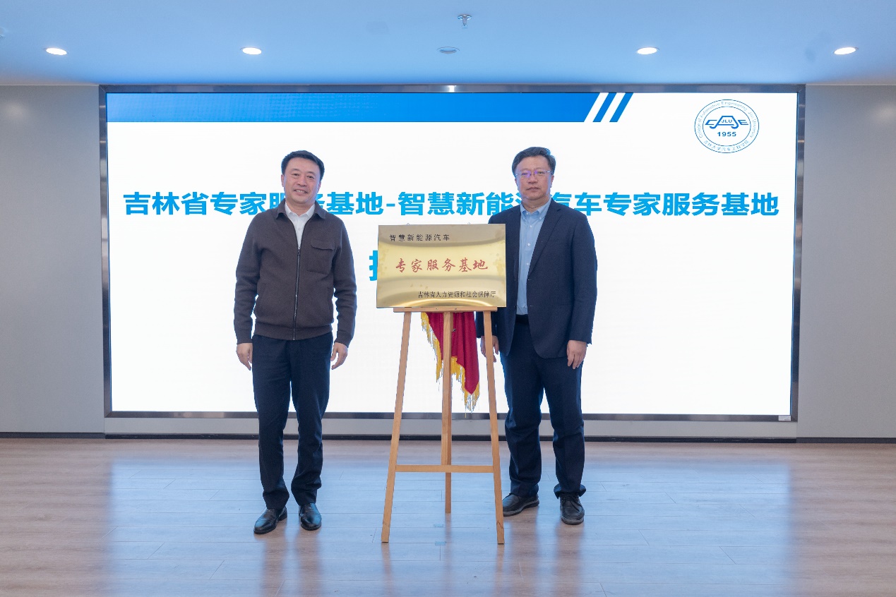 论坛同期举行了吉林省专家服务基地-智慧新能源汽车专家服务基地的揭牌仪式,并为省内十余位专家颁发了吉林智慧新能源汽车专家服务团成员聘书。