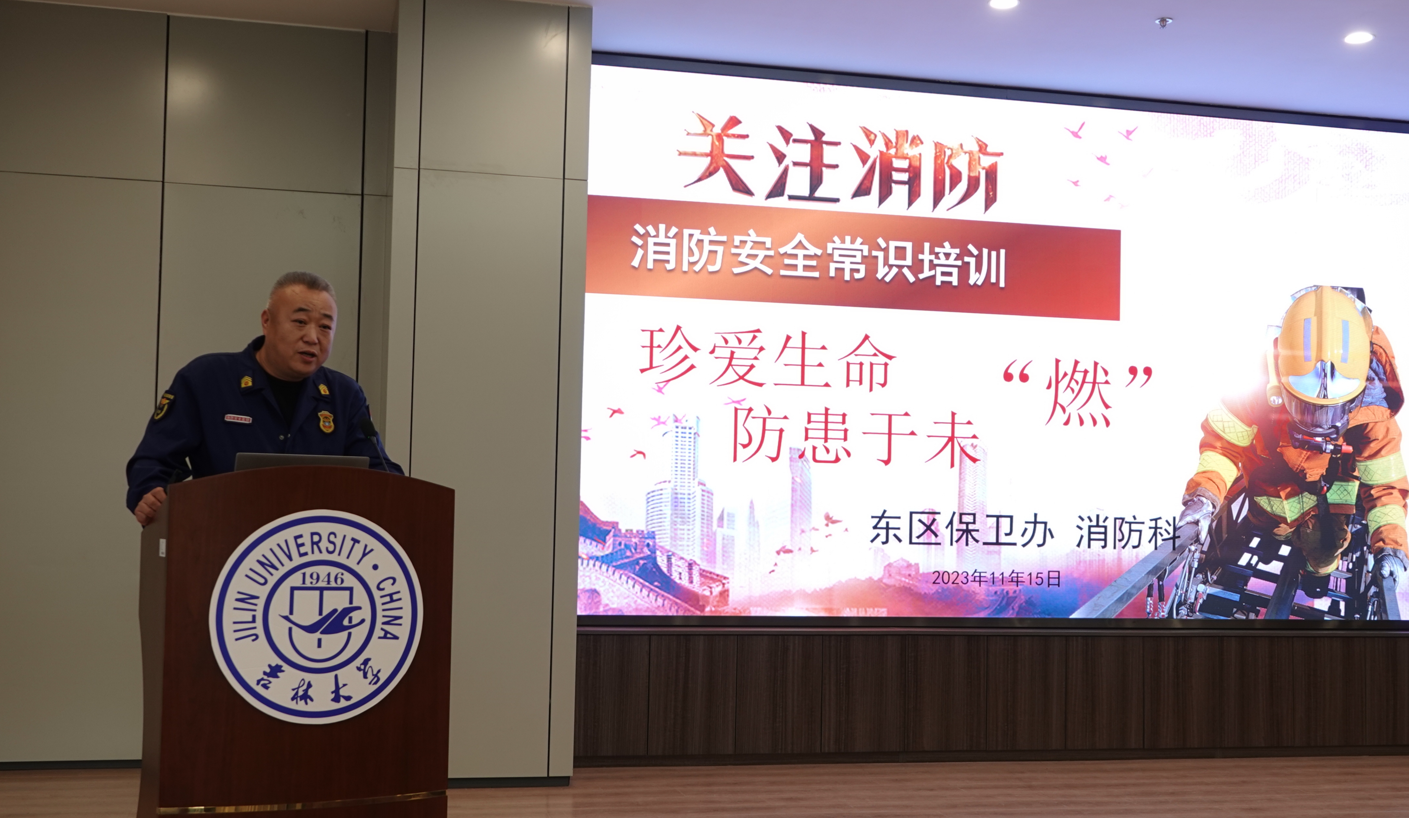 本次活动分为消防安全知识培训、应急防火疏散演练、消防器材灭火演练三个环节。首先,东区保卫办防火科科长王中刚根据公司消防工作管理办法,结合近年来全国各地公司发生的火灾案例,重点剖析了火灾事故根源,详细讲解了火灾预防、火灾应对措施及逃生方法等内容,强调“防”重于“消”,进一步加深了师生对火灾危害的认知,有效增强了师生的消防安全责任意识。