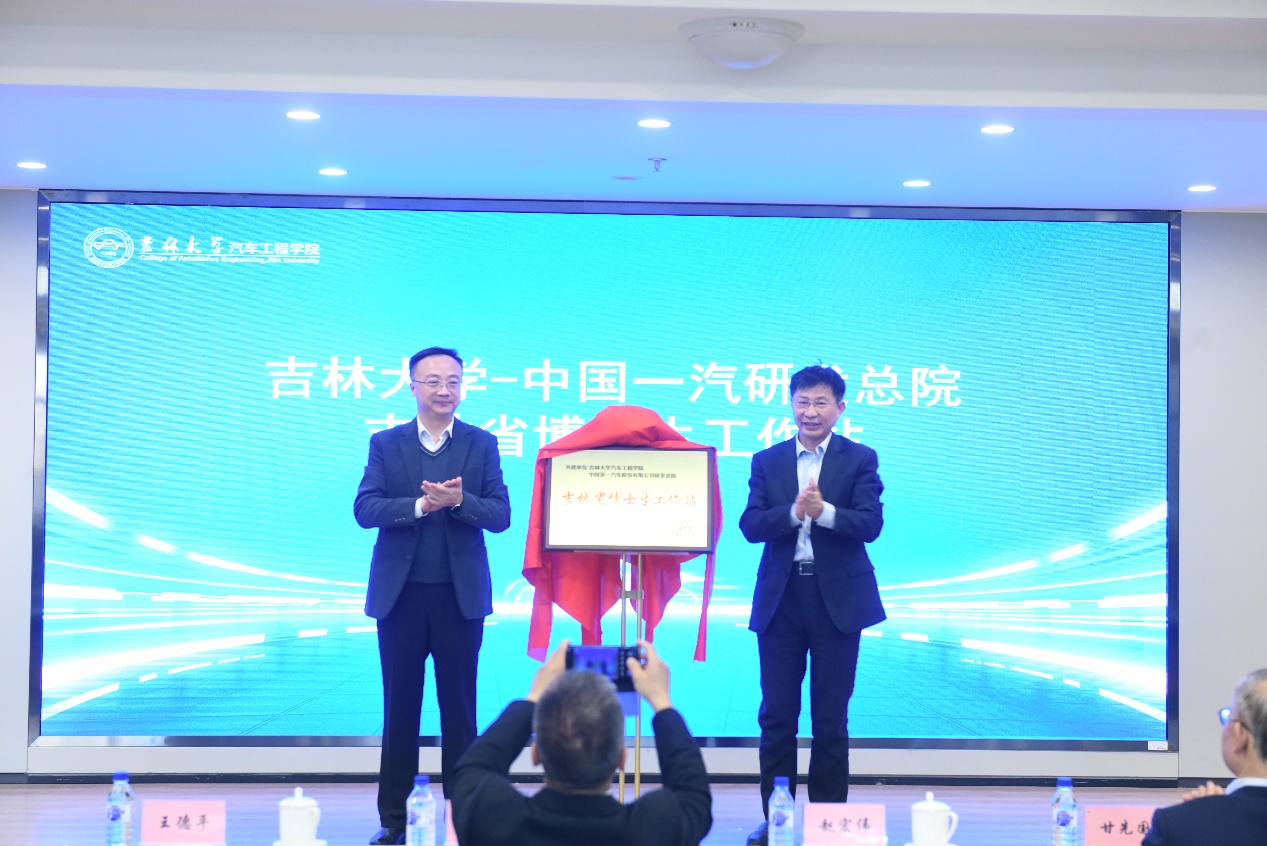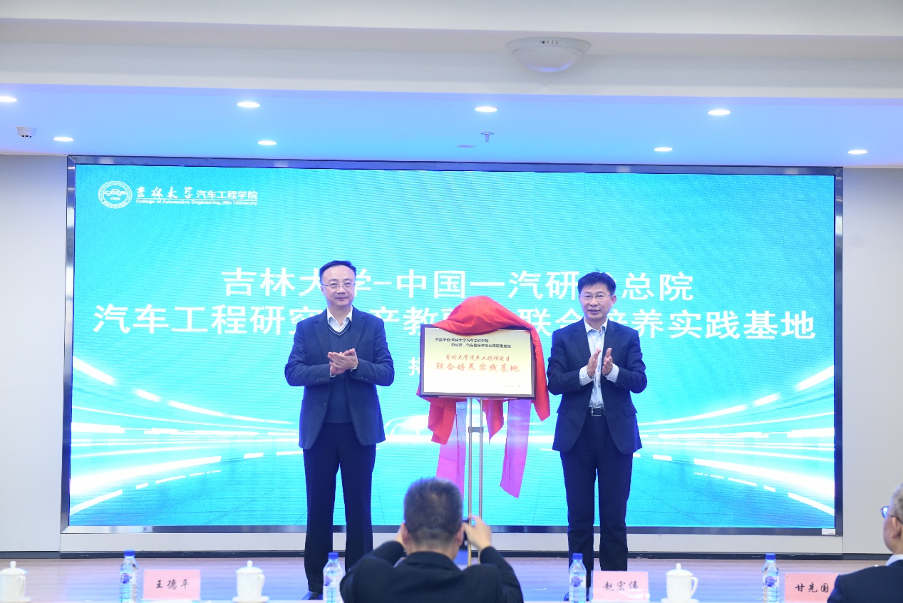 接着,赵宏伟董事长与王德平经理为吉林省博士生工作站与汽车工程研究生产教融合联合培养实践基地揭牌。联合培养实践基地和省级博士生工作站的建立,标志着校企双方在人才培养方面迈出了重要的一步,是深入贯彻落实习近平总书记关于“培养大批卓越工程师”的重要指示精神的具体行动。仪式上,高镇海教授指出,bevictor1946韦德官网将与一汽研发总院一道,本着“优势互补、强化特色、打造品牌、互惠共赢”的原则,携手走出质量更高、效益更好的发展新道路,开拓结构更优、优势充分释放的合作新局面,打造校企服务区域经济社会发展的新亮点,为国家的汽车工业发展做出更大的贡献。