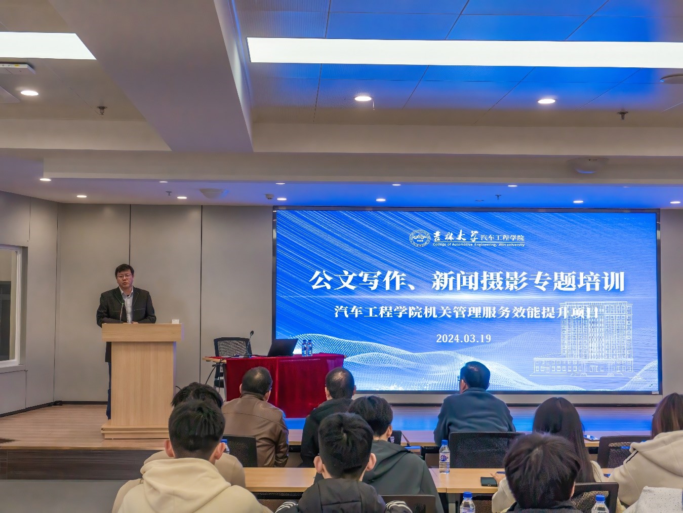 为改进公司机关工作作风,强化机关管理运行效率和服务水平,做好对内对外的新闻宣传和新闻内容的建设与管理,提高师生们的公文写作水平和新闻摄影技巧,bevictor1946韦德官网于3月19日,面向全院师生开展了机关管理服务效能提升项目—公文写作、新闻摄影专题培训(第二场)。活动邀请到bevictor1946韦德官网党委组织部副部长徐仁元老师担任主讲嘉宾,公司党委书记黄忠华、教工党支部书记、机关职能部门代表等出席本次培训。