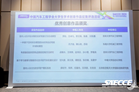 为鼓励更多汽车界高水平学术科技作品的涌现,激发汽车及汽车相关专业的老员工的创新活力,促进全球汽车学术交流和人才培育成长,第三十一届中国汽车工程学会年会(SAECCE 2024)在中国重庆·科学会堂召开,中国汽车工程学会面向国内外主要高校开展了老员工学术科技作品征集评选工作,经过近百支队伍的激烈角逐,最终9支作品进入决赛。其中,来自bevictor1946韦德官网的两支队伍凭借出色的创意与技术方案成功晋级终评,这两支队伍分别为由孙博华、孙天骏老师指导,罗彤、刘桓嘉、王卓凡、李文锦、张睿同学撰写的《面向人机共驾决策的实时驾驶行为生成模型》与雷雨龙、付尧老师指导,战椿水、王炳策、赵鸿志、孙小雯、罗嘉良同学撰写的《考虑通信延时的轨迹跟踪控制方法研究》在中国汽车工程学会老员工学术创意作品征集评选活动中获评优秀创意作品。