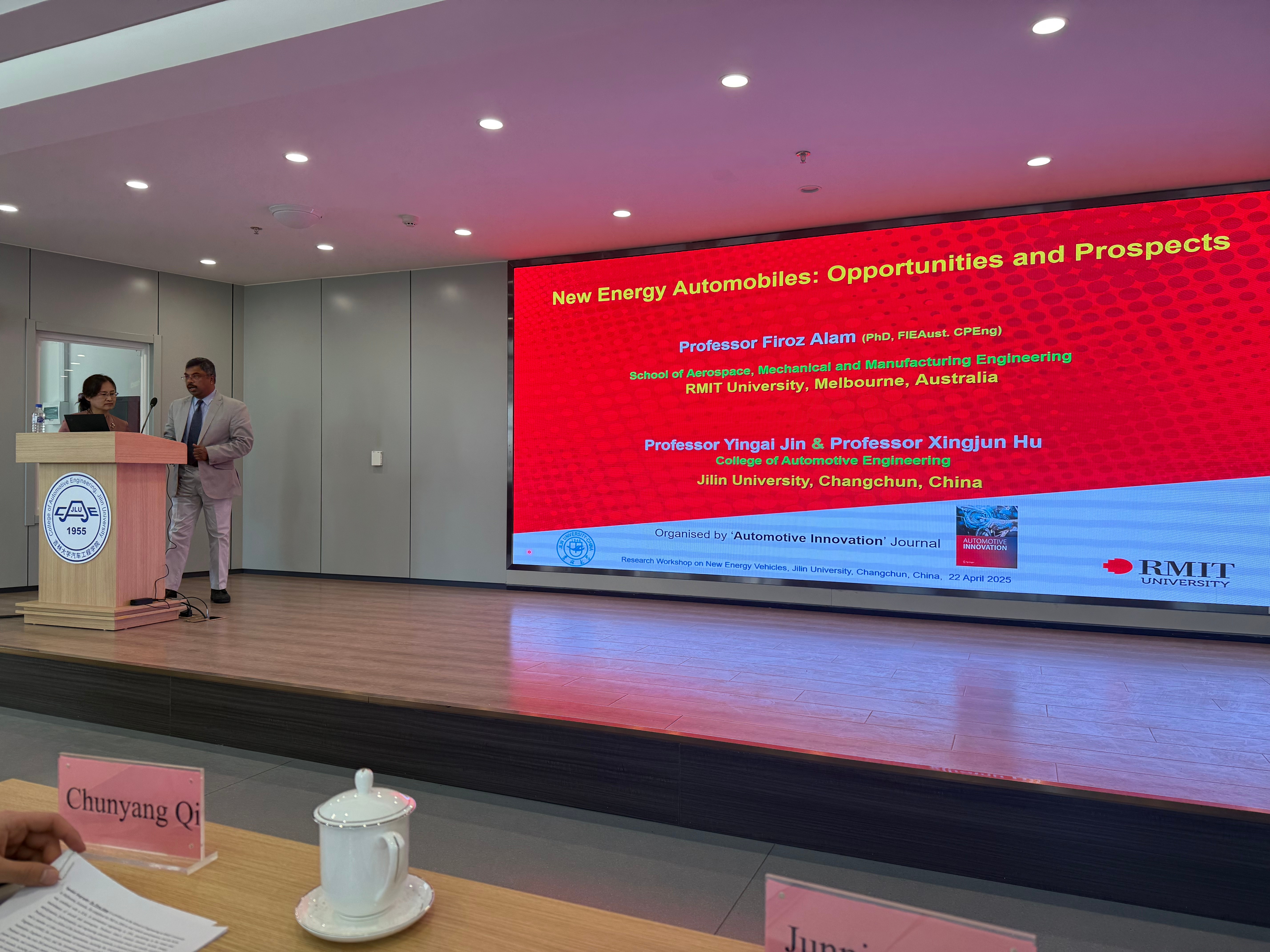 Firoz Alam教授发表了题为“New Energy Automobiles: Opportunities and Prospects”的演讲。Alam教授首先回顾了全球电动汽车市场发展现状,肯定了中国在全球电动汽车市场的主导优势地位与做出的节能减排贡献。也指出新能源汽车行业发展仍面临的三重挑战,呼吁通过技术创新与政策协同,推动充电网络智能化、电池回收规模化、EV购置成本降低,以加速EV在新兴经济体和发展中国家的市场普及,释放EV产业长期增长潜力,加速全球交通系统的低碳化转型。