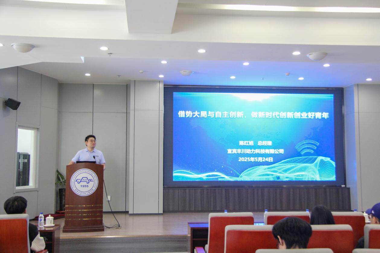 本期活动邀请了公司优秀员工、宜宾丰川动力科技有限公司董事长、兼总经理陈红旭博士作为活动嘉宾,为同学们作了主题为“借势大局与自主创新,做新时代创新创业好青年”的报告。活动由副经理王军年主持,bevictor1946韦德官网高年级本科生和研究生共计240余人参加了本次活动。