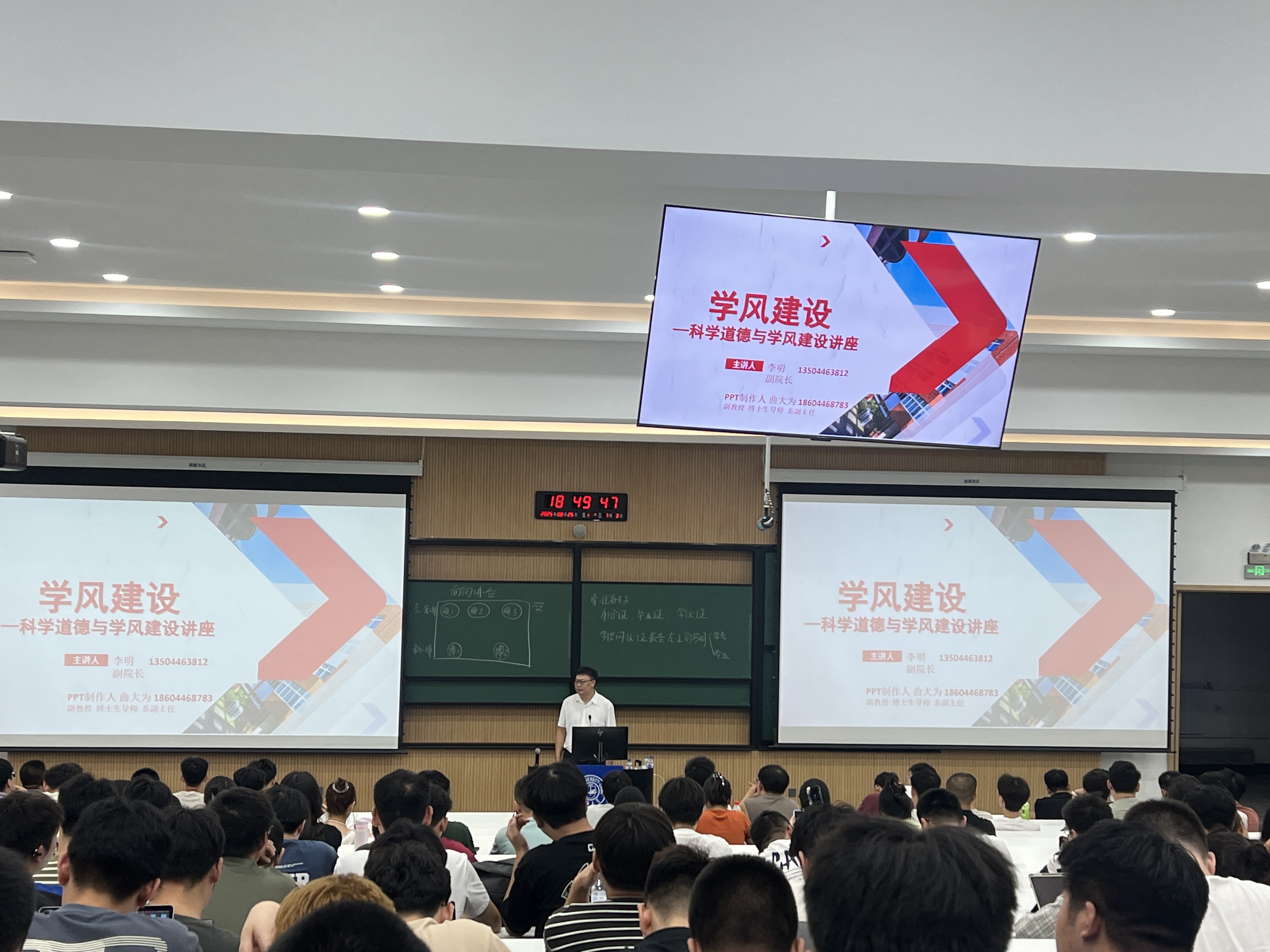 随后,李明教授进行了科学道德与学风建设讲座。他表示,对于研究生而言,学术研究是主要任务,而严谨的学术规范和良好的学术道德是营造优良学风和浓厚学术氛围的重要保障,也是确保公司产品质量、引导其走上正确科研道路的前提。