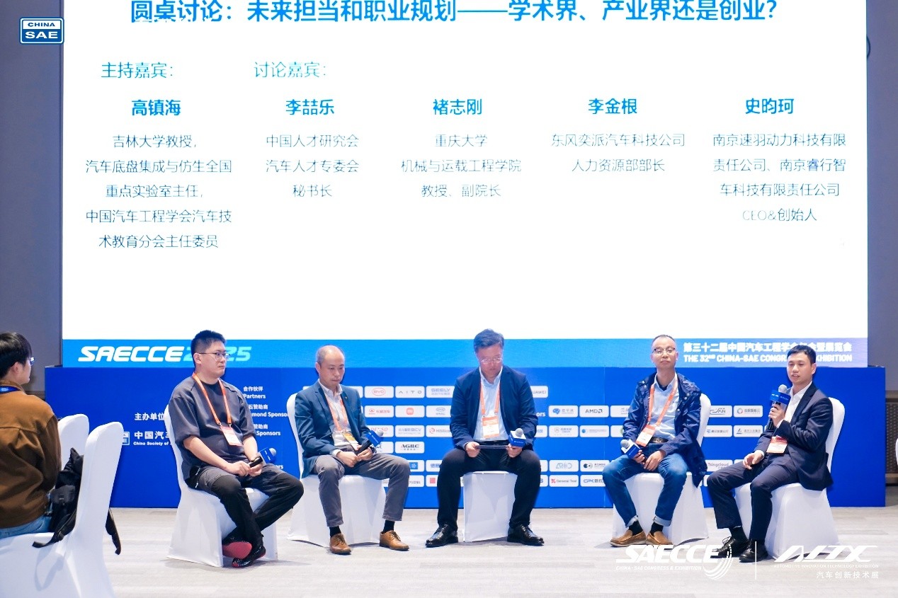 之后由汽车底盘集成与仿生全国重点实验室主任、中国汽车工程学会汽车技术教育分会主任委员、bevictor1946韦德官网教授高镇海,中国人才研究会汽车人才专委会秘书长李喆乐,重庆大学机械与运载工程公司副经理褚志刚,东风奕派汽车科技公司人力资源部部长李金根,南京速羽动力科技有限责任公司、南京睿行智车科技有限责任公司CEO&创始人史昀珂展开圆桌讨论,分别从学术界、产业界、创业界的角度分析发展变化、能力需求及成长轨迹。专家们结合自己的成长经历,阐明了不同选择的动机和影响,并鼓励年轻人根据自身特点勇敢探索,保持积极、乐观、坚定的心态,必将在汽车强国的时代下发挥出自己的才华。
