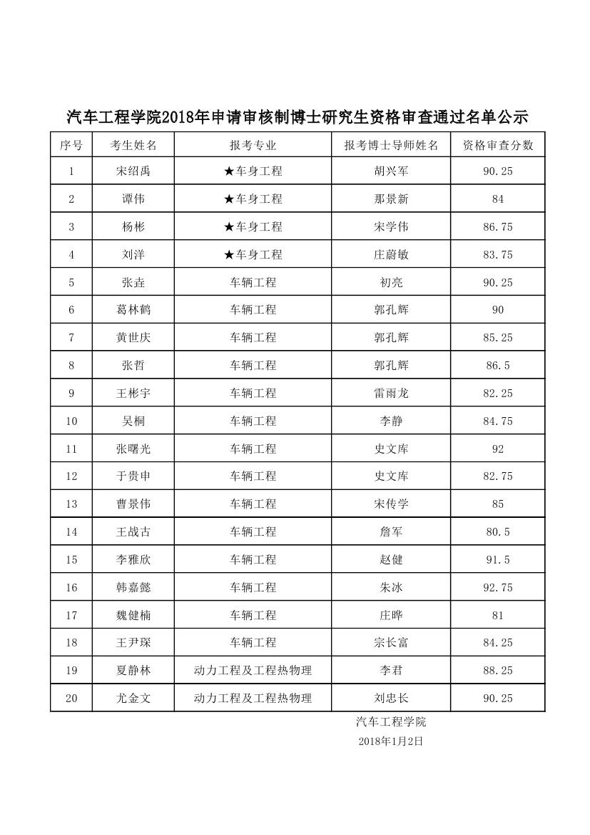 2018年申请审核制博士研究生资格审查通过名单公示