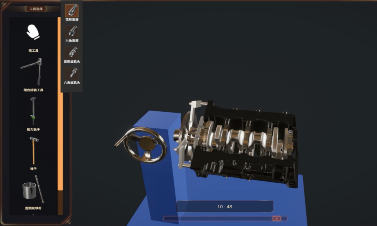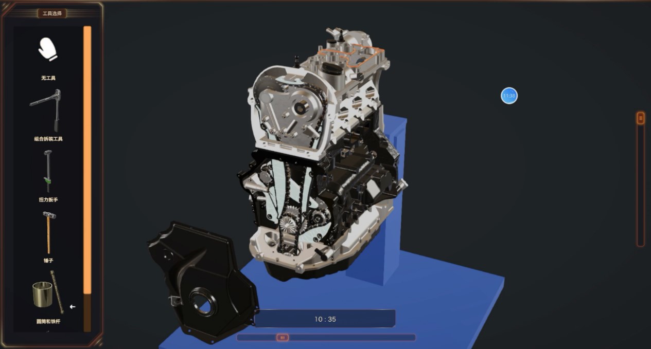 在本次决赛中,从初赛与复赛的理论知识竞赛中脱颖而出的四组选手,无不踌躇满志、摩拳擦掌。这是一场巅峰之间的激烈碰撞。决赛开始前,员工会提供了汽车发动机、专用工具等比赛器材模拟环境,同时提供录屏软件来录制比赛过程。所有参赛团队都已提前调试好虚拟平台,熟悉了软件操作。随着注意事项的宣读,比赛正式开始。各组参赛选手分工有序,积极讨论,最终每队派出一名同学负责模拟拆装。虽然是在线上,但是各个队员都动作干练,拆装准确,展现了汽院学子卓越的动手实践能力和较高的专业素养。比赛结束之后,选手将录屏发送到指定邮箱,评委组成员根据综合用时长短及操作是否结合实际,参考拆装步骤确认最终排名,并为获奖团队邮寄奖品。