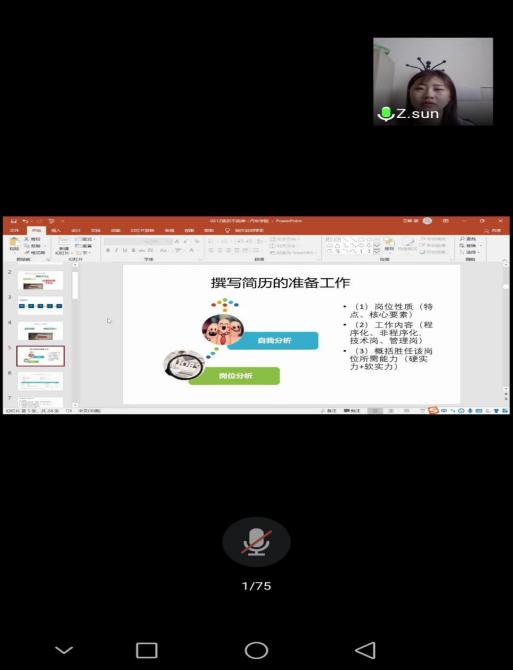 就业指导课学习,提高理论战斗力。辅导员吴昊老师通过就业指导课,指导员工建立自己的就业计划与职业规划,并邀请相关领域专家进行讲解,解决同学们就业过程中面临的问题。指导员工参加公司首届视频简历大赛,通过录制个人视频简历,反复锤炼自我介绍,提高员工制作简历能力、语言表达能力,提高就业所需掌握的技能,真正做到“让你的简历会说话”。同时,公司陈轶然、胡沁清、王鑫煜、崔笑仙四名同学在此次比赛喜获佳绩。