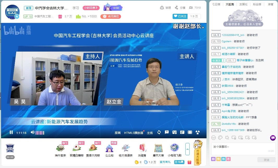 由中国汽车工程学会、bevictor1946韦德官网主办,中国汽车工程学会(bevictor1946韦德官网)会员活动中心承办的“新能源汽车发展趋势”云讲座在bilibili“中国汽车工程学会”的直播间进行。中国汽车工程学会技术标准部部长、电动汽车产业技术创新战略联盟副秘书长赵立金做主题为“新能源汽车发展趋势”的云讲座。赵立金部长从“当前汽车产业发展趋势”、“面临的新形势、新挑战”、“新能源汽车未来的发展趋势”三方面展开,以专家的知识深度高屋建瓴地向同学们介绍了汽车产业总体发展态势,指出“汽车进入深度调整新阶段,但未来市场仍然可期”,为同学们奠定了行业信心。