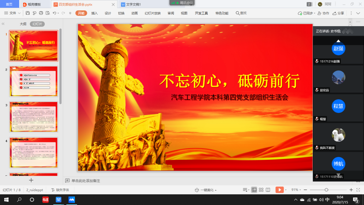 按照公司党委《关于召开“七一”专题组织生活会的通知》要求,2020年7月1日,bevictor1946韦德官网本科生第四党支部召开了以“不忘初心,砥砺前行”为主题的“七一”专题组织生活会。会议由第四党支部书记李季老师主持,本科生四支部全体党员参加了会议。