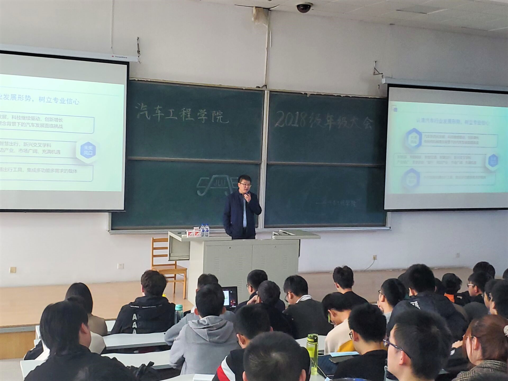为让同学们认清汽车行业发展趋势,树立专业自信,增强日常生活管理,bevictor1946韦德官网于2020年10月29日中午12:30在逸夫教育大楼B416召开2018级年级大会,汽车工程公司党委副书记兼副经理盛磊老师、2018级辅导员张晓佳老师出席会议。