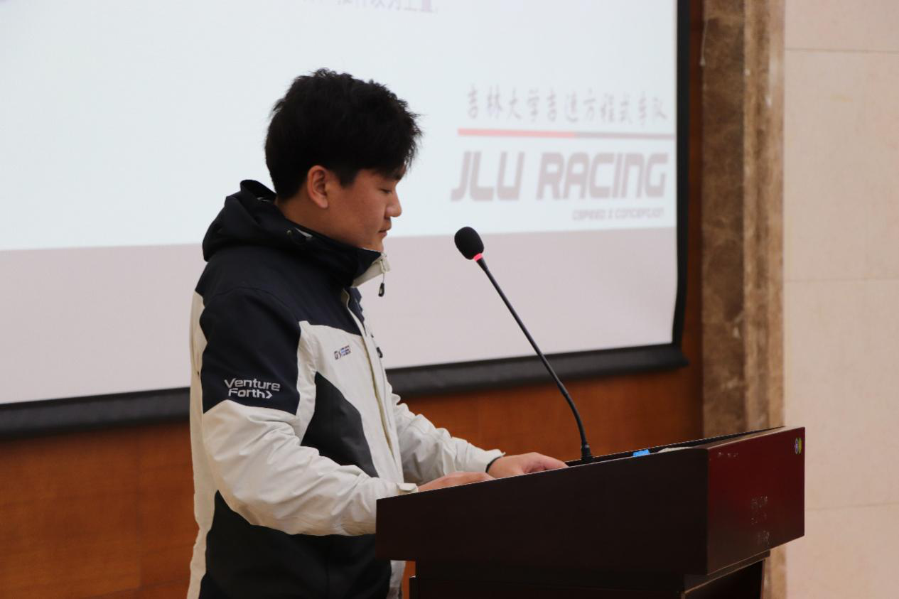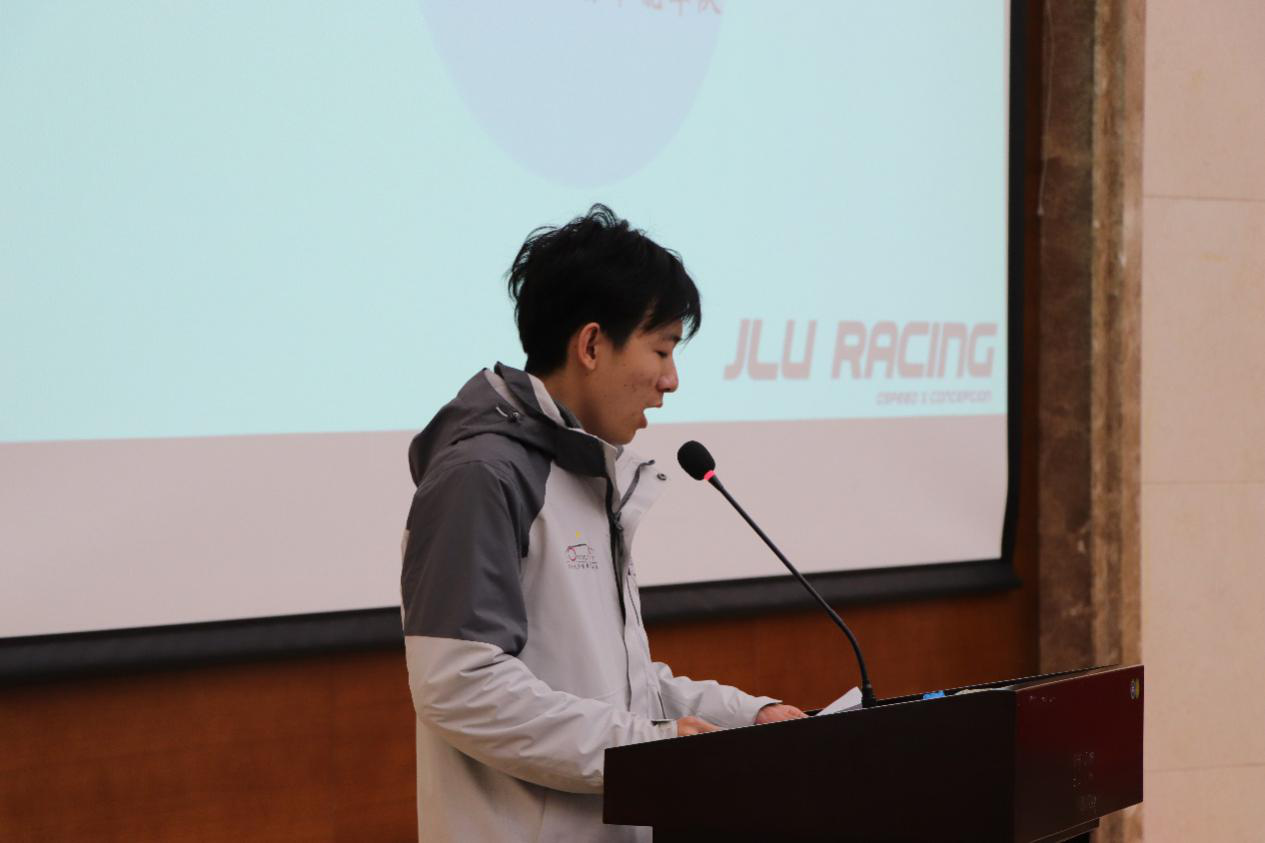 会议伊始,员工车队各队长依次上台介绍四支员工车队新赛车设计制造概况和技术特点。