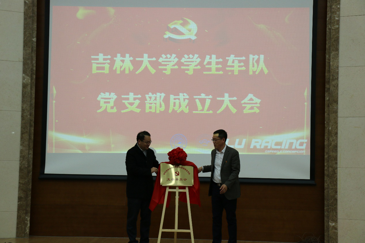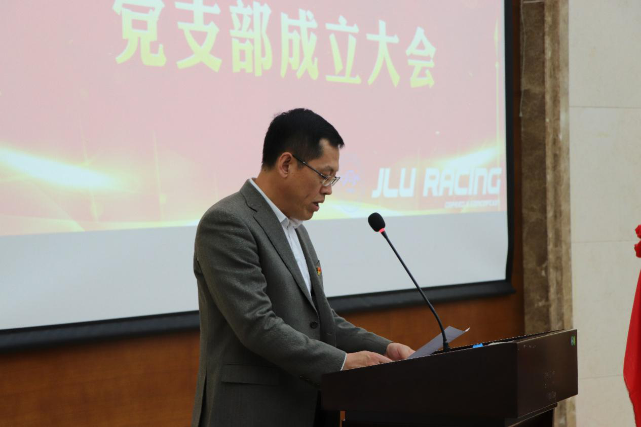 接下来员工车队党支部成立仪式正式开始。汽车工程公司党委书记李善兴老师宣读了员工车队党支部成立决定;员工工作部部长代磊老师同李善兴老师一同为员工车队党支部揭牌;同时,代磊部长为马克思主义公司副经理石瑛教授颁发聘书,聘任其为员工车队党支部理论学习指导教师。最后,员工车队党支部书记金兆辉老师代表支部讲话。