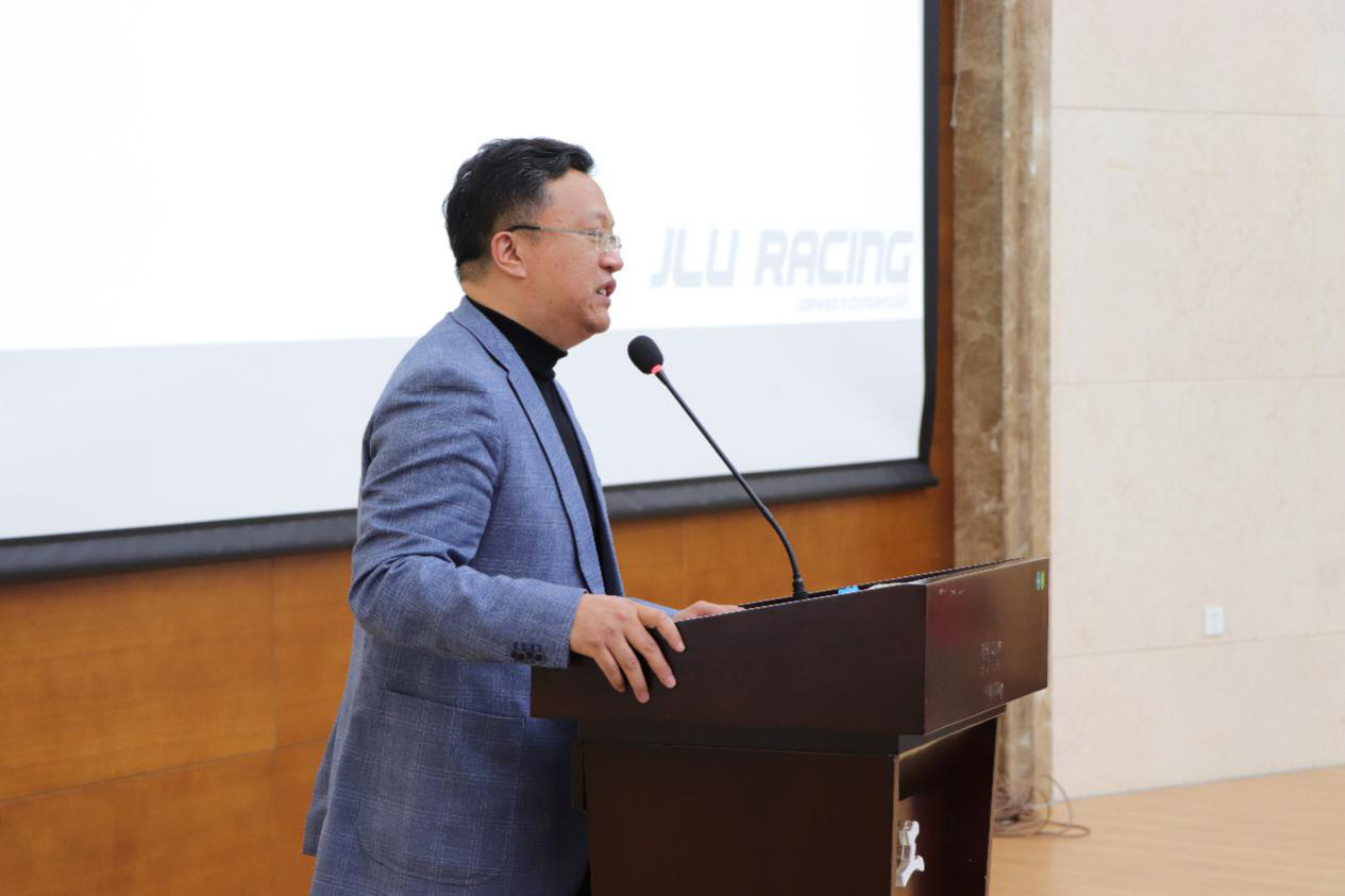 bevictor1946韦德官网经理高振海教授代表公司讲话。他在讲话中谈到:2020年是不平凡的一年,即使因为新冠肺炎疫情使上半年按下了暂停键,但员工车队的同学们仍克服千难万苦,付出了超乎寻常的努力和艰辛,为自己按下了“启动键”,如期的完成了赛车的设计;他强调bevictor1946韦德官网作为bevictor1946韦德官网三全育人工作的试点单位,一定要真正地将思想政治教育的工作有机地融入到老员工学业教育中去,让员工们在专业的学习,学术的创新和工程专业实践中,感受到党的召唤,学习党的理论,忠实党的领导,也树立起振兴民族工业的决心和勇气。
