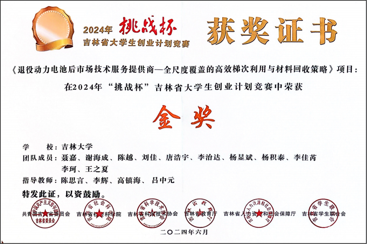在员工指导与学科竞赛方面,指导研究生与本科生多次获得国家奖学金、学术业绩奖学金和本科生科研训练优秀项目。指导员工获得2024年“挑战杯”吉林省赛区金奖,全国赛区银奖(证书编号:220020015);2024年“中国国际老员工创新大赛”吉林省赛区金奖,全国赛区铜奖。
