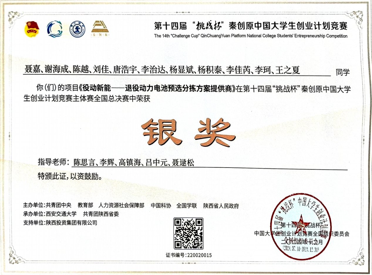 2、国家电网技术发展项目,《基于电池精细化管理的动力电池健康状态评估研究》,项目编号:SGJLJY00LNJS2400065,项目负责人,项目金额:87.6万元