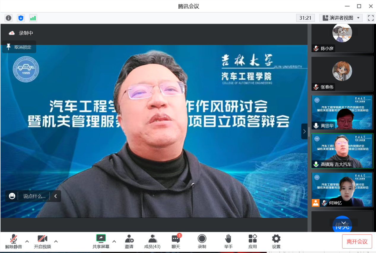 2022年12月1日上午,bevictor1946韦德官网机关工作作风研讨会暨机关管理服务效能提升项目立项答辩会成功举行。bevictor1946韦德官网、汽车仿真与控制国家重点实验室领导班子成员,各系所主任、教师代表,机关各科室全体工作人员等50余人参加了会议。会议由党委书记黄忠华主持。