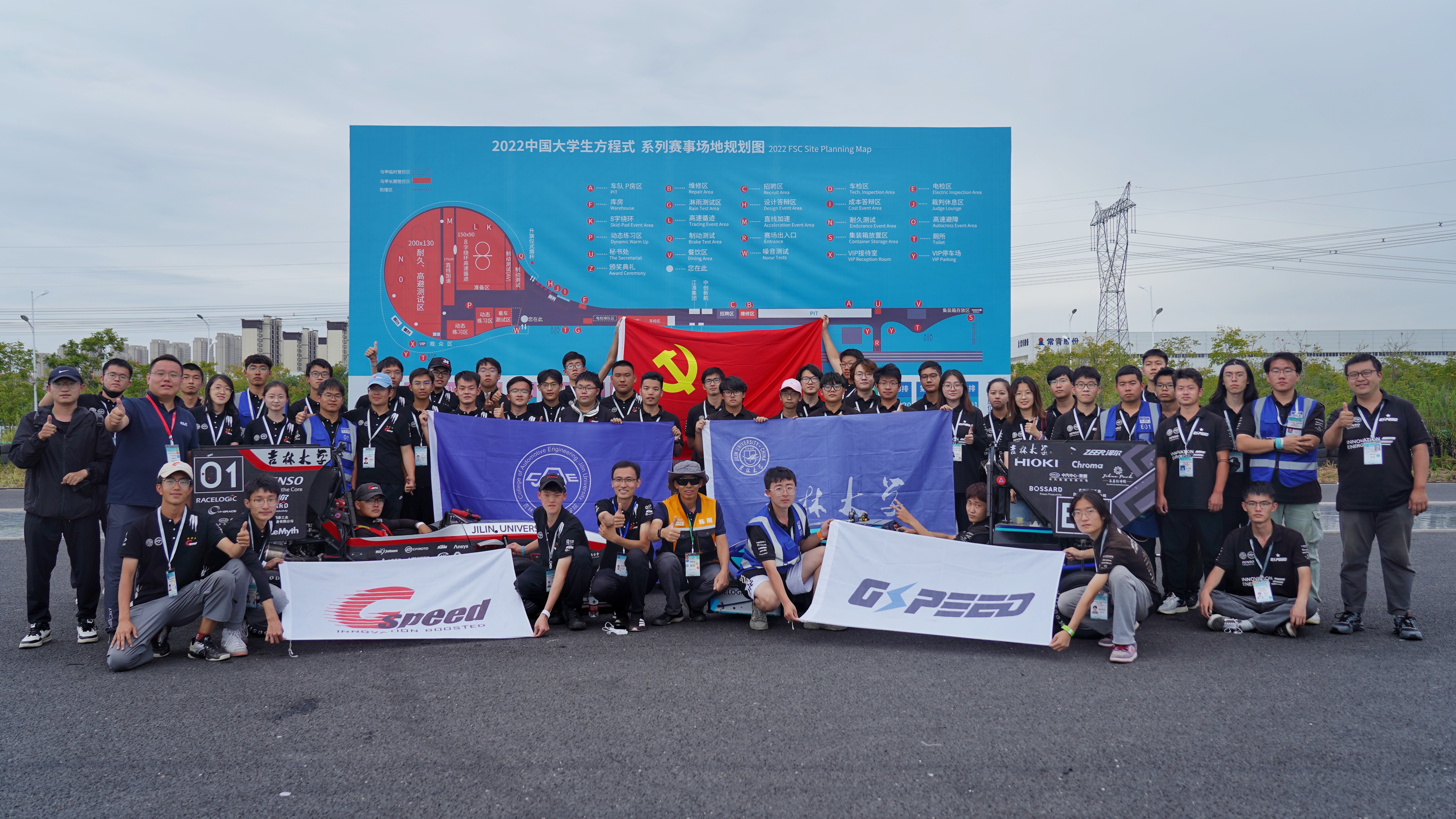 The 2022 Formula Student China (FSC) was successfully held at the JAC testing ground in Hefei, Anhui Province from September 16 to 21, 2022. The Gspeed formula racing team of Jilin University stood out after the six-day fierce competition with 105 participating teams from Tsinghua University, Beijing Institute of Technology, Tongji University, Hunan University, and Jilin University (JLU). The team won first place in the racing car design, linear acceleration, and durability test, second place in skidpad, third place in cost manufacturing analysis, and won the fastest lap prize in the whole competition. It successfully defended the championship of the Formula Student China again with significant advantages, reaching a new record of “three consecutive championships” and “four champions in five years”. Meanwhile, the Gspeed electric formula racing team of Jilin University also won first place in racing car design and cost manufacturing analysis, and second place in high-speed obstacle avoidance in the electric group, whose total score was among the highest rankings of participating teams.